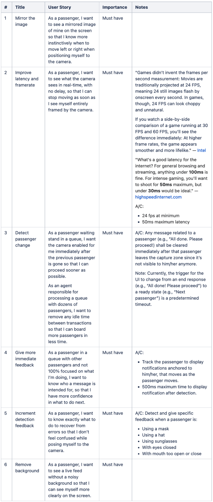 We knew that the technology needed improvement, but there was any target yet. My first step was to analyze all the inputs from the test and surveys, and make more research to define a list of experience requirements, with clear acceptance criterias.