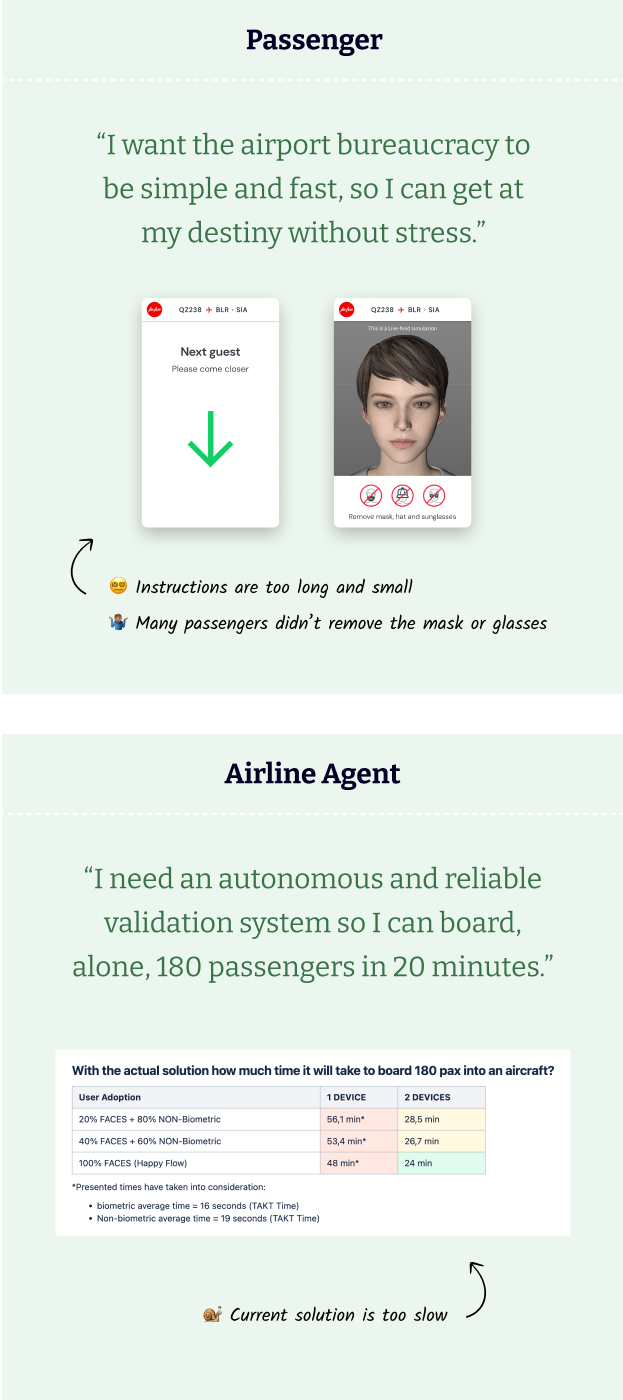 The airline agents would not be satisfied at all, since the boarding time was far away from the target. We also found that the positioning of the entire setup and the passengers is critical and the agents needed clear instructions about that.